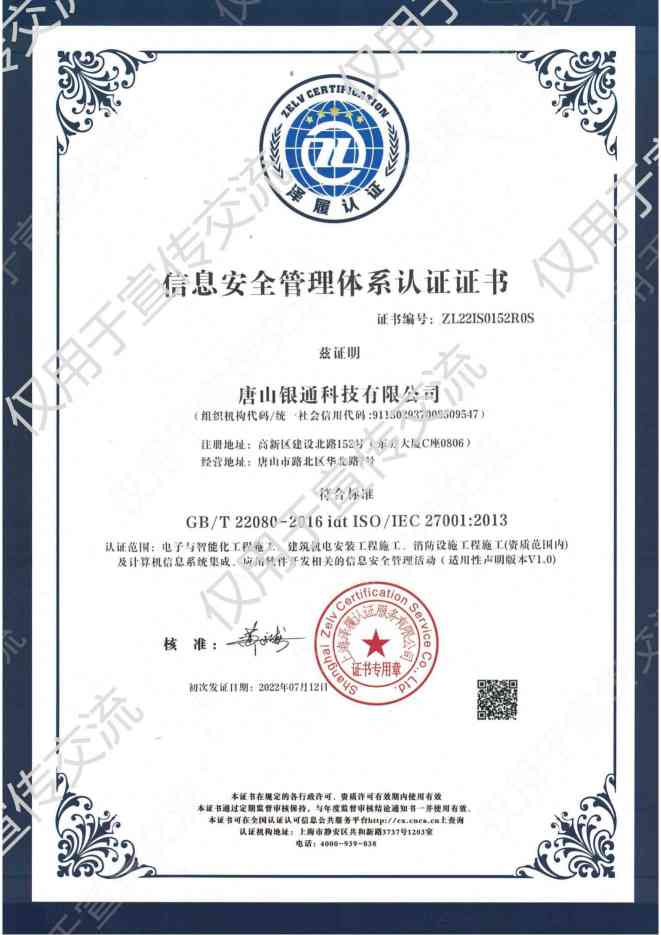 2022年 公司于2022年通過信息安全管理體系認證;推出智能安全管理系統(tǒng) |